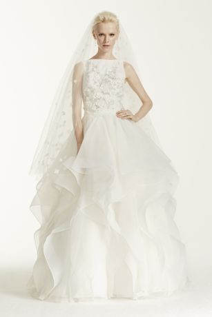 Oleg Cassini High Neck 3D Floral Wedding Dress