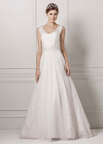 Oleg Cassini Tank Wedding Dress with Lace Accents