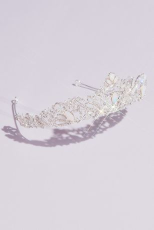 Iridescent opals and glittering crystals twist into a lovely filigree tiara, adding a regal dose of color, shimmer, and sparkle to your hairdo.