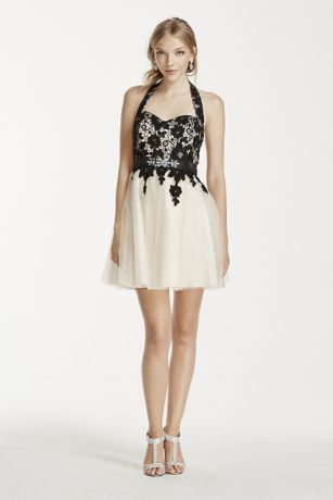 Open Back Lace Halter Dress with Short Tulle Skirt