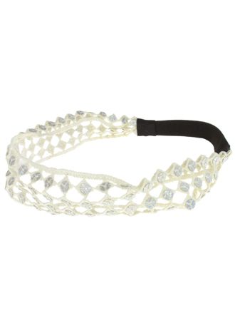 • Head wrap features 2" wide open diamond shape trim with sequin detail.