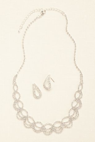 This chic, shiny open work crystal necklace and matching earrings is an instant standout!