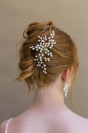 This bridal hair comb features delicate sprays of hand-wired freshwater pearls, creating a soft and romantic touch. Perfect for adding elegant shimmer to any bridal hairstyle.