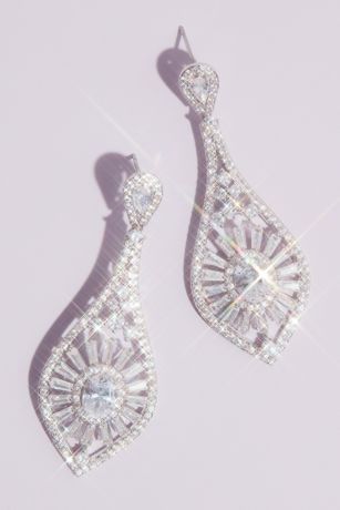 Oval and Baguette-Cut Crystal Burst Drop Earrings
