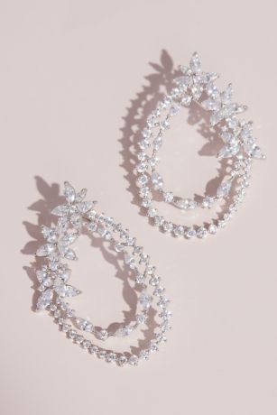 Three blooming crystal flowers cascade into two parallel rows of glistening stones to create these elegant stud earrings.