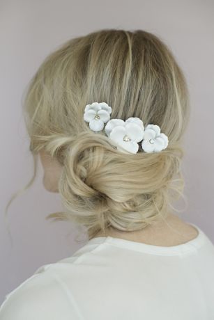 This hand-painted duo of flower hair combs sparkles with Swarovski crystals and gold-leaf details.