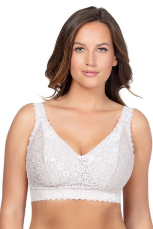 Stay supported while relaxing or even sleeping with this lacy, full-coverage bra. Wire-free cups and a structured band make this the perfect lounging piece. A J-hook converts the straps to a crisscross style for maximum versatility.