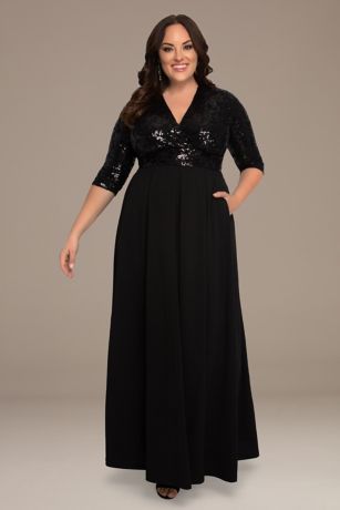 This stunning plus size gown features a sequin bodice and pleated A-line skirt (with pockets!).