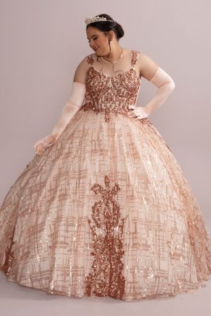 Look like royalty in this dazzling quinceanera ball gown, featuring a check-patterned sequin tulle skirt and matching removable bolero.