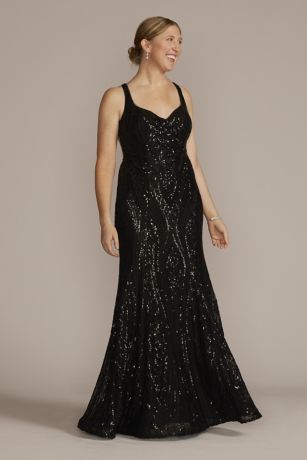 Catch light and attention in this sequin-adorned mermaid gown. A flirty lace-up back detail completes the look.