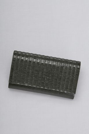 Two types of gems, tiny pave stones and bold baguettes, form sleek rows on this gleaming foldover clutch.