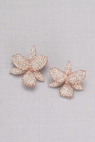 Dozens of pave Swarovski crystals adorn this orchid-shaped pair of post earrings.