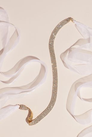 Four rows of pave crystals line up to create a glittering, liquid-like sash.