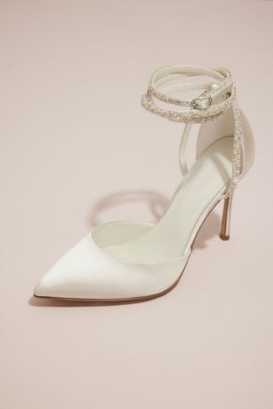 Pearl and Crystal Ankle-Wrap Satin Pumps