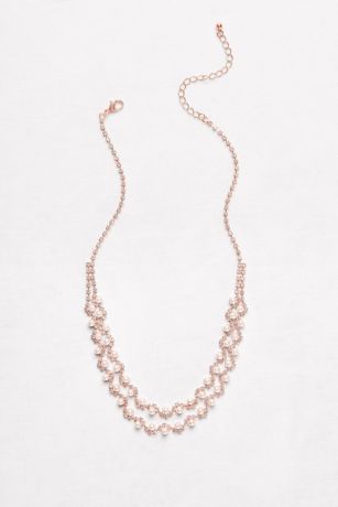 Two rows of rhinestone waves are topped with softly shining pearls on this lovely occasion necklace.