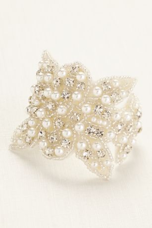 - Flexible fabric bracelet features pearl and crystal embellishment.