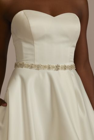 Make your look shine with this organza sash, topped with pearl and crystal embellishments in delicate floral arrangements.