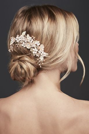 Clusters of pearl buds and crystal flowers flourish atop this hair clip.