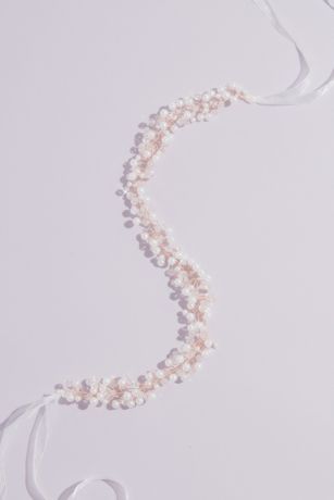 Pearl and Crystal Hair Wreath with Organza Ribbon