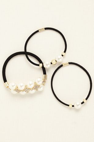 Add some pop to your pretty ponytail with this gorgeous set of pearl and crystal ponytail holders!