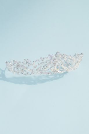 A glam crown for the quincea era herself, this tiara is loaded with lustrous pearls and glittering crystals.