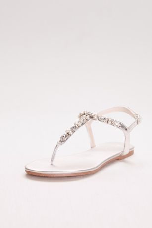 Pearl and Crystal T-Strap Sandals