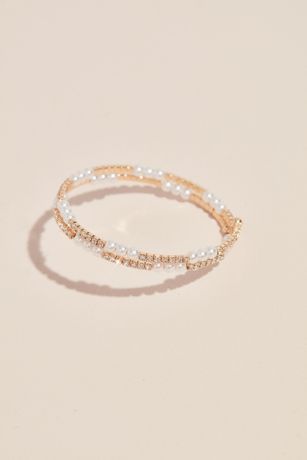 Clusters of pearls and rows of rhinestones create a lovely pattern on this wrist-wrapping bangle.