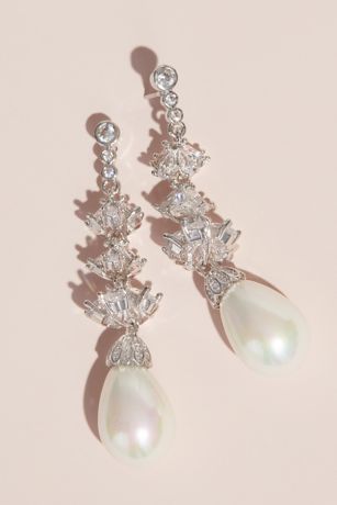For a sophisticated statement, turn to these pearl drop earrings with tiers of crystals.
