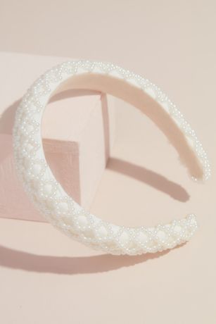 A beautiful pattern of crisscrossing pearls adorns this simple wide headband.