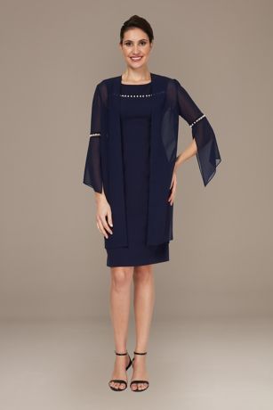 Pearl Trim Knee-Length Cocktail Dress with Jacket