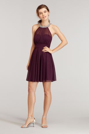 - Featuring a pearl embellished halter this dress accessorizes itself!