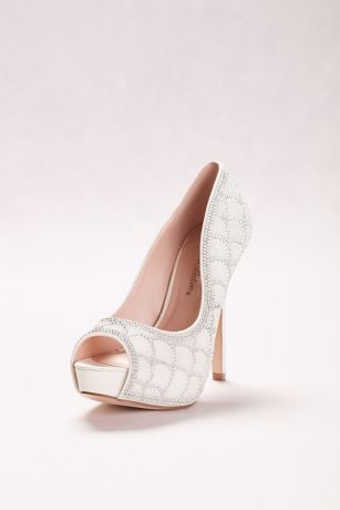 Give your look a boost in these sky-high peep-toe pumps with allover scalloping traced in tiny crystals.