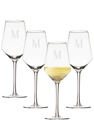 Sip your favorite white wine in style with the Estate Collection White Wine Glasses. These elegant wine glasses are constructed with a timeless design, large bowl, and thin stem. The set includes four glasses that will look beautiful on any table setting or paired with any style of decor. The perfect gift for newlyweds, these can be personalized with an initial to make an extra special gift!