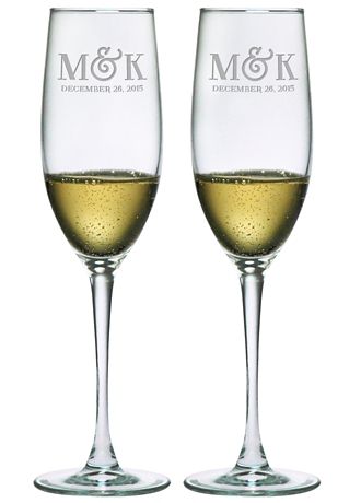 These classically-shaped personalized 8-ounce toasting flutes will add style to your ceremony and easily become a treasured wedding keepsake for years to come. Choose from a variety of 2-initial monogram design styles and we will deeply sand blast them on to your flutes by hand.