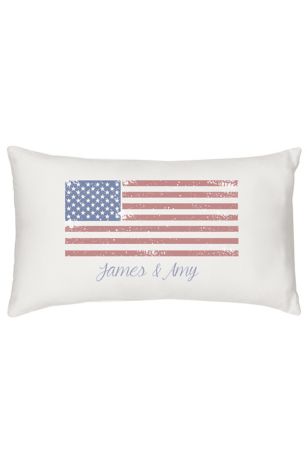The Personalized American Flag Lumbar Pillow is the patriotic piece your home needs this summer. The distressed American flag design is printed on a cotton exterior covering a polyester insert. Personalize this Americana pillow to make it your own.