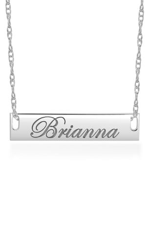 A modern take on the nameplate necklace, gift your family, friends, or yourself this cool bar pendant necklace, engraved with their name or a special phrase in script lettering.