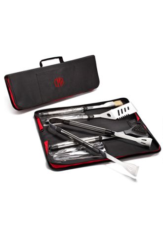 This sleek carrying case conceals an arsenal of high-end grilling tools for your groomsman that takes pride in turning out the perfect barbecue. Adding his embroidered monogram to the sturdy polyester exterior will make him feel (and probably act) like a professional chef. The case features a carrying handle and zippered closure and inside rests a grill brush, spatula, basting brush, and tongs -- all in stainless steel.