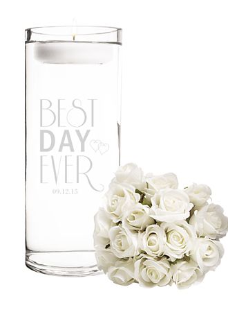 Make the day memorable with our Personalized Best Day Ever Floating Unity Candle. A step away from traditional unity pieces, this tall glass vase features a floating wax unity candle and custom personalization. After the ceremony, keep this unity vase as a keepsake to celebrate the best day for years to come.