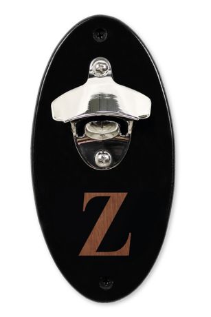 Keep the beer flowing with our Personalized Wall Mount Bottle Opener. This bottle opener is made of wood and features a sturdy metal opener and an etched single block initial, branding it for every owner. Available in a black lacquer finish and comes complete with two screws for secure wall mounting.