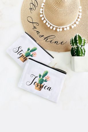 Thank your bridal party with personalized cosmetic bags with a cute cactus design and her name in pretty script. Fill it up with all the necessities she'll need for the big day.