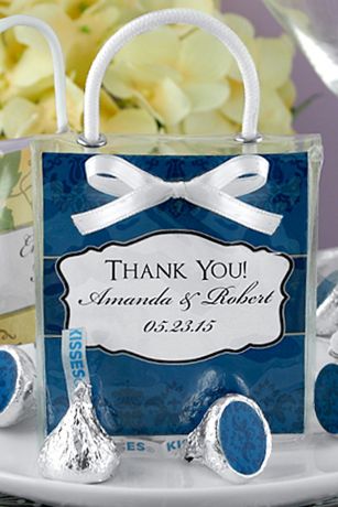 Eight Hershey Kisses packed in a personalized mini tote: what a sweet treat for your guests!
