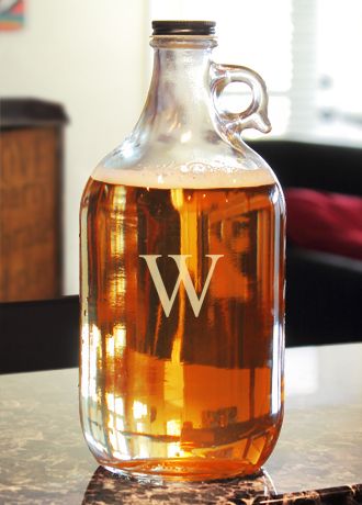 A popular trend among beer brewers and lovers alike, our Craft Beer Growler is an ideal gift for every man's barware collection. Custom etched with a single block initial and topped securely by a screw on cap, this half gallon growler works perfectly for transporting favored beers from a preferred brewery to your home, as well as transporting your own beverages with you when you're on the go! By combining vintage style with trend-pleasing functionality, this dishwasher safe dispenser is something that will easily be treasured for years (and toasts!) to come.
