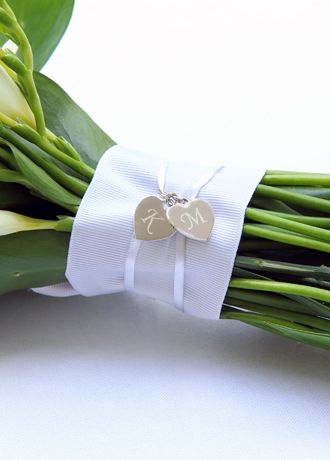 Our Bridal Bouquet Double Heart Charm Bracelet is the perfect way to personalize your bridal bouquet. After customizing it with two initials and placing it on your bouquet, the double heart charm can be removed and clipped on to the included link bracelet for everyday use after the "I Do's."