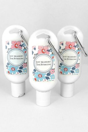 Offer your guests a reason to LOVE sun protection...Personalized for your special event, perfectly sized for travel, and completely convenient with an attached carabiner clip. These first-class favors ensure that your loved ones have no more excuses for not protecting their skin from harmful sun rays. Each eye catching container is filled with a rich yet lightweight SPF 30 sunscreen, infused with natural ingredients... Organic Aloe Vera, Vitamin E and Sunflower Oil to nourish and soothe sun-exposed skin. Terrific for tropical destination weddings, or weekend guest bags!