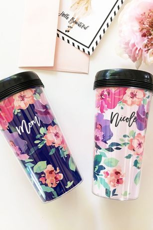 Perfect for the coffee lover, this Personalized Floral Traveling Coffee Tumbler comes in two beautiful floral patterns and can be personalized with her name!