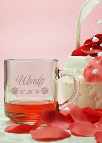 Personalize this 10-ounce glass mug and it will make a unique keepsake gift for the flower girl or other children in your wedding party. Fill with their favorite candy and you are sure to put a smile on their little faces! Choose from a variety of fonts and designs to make each mug unique!
