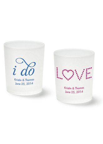 Add your unique style to these frosted glass votive candle holders for an extra special detail! Whether it's indoor or outdoor, beach or ballroom -- these personalized votive candle holders add to your decor and make a wonderful wedding favor for your guests to take home. Personalize with your choice of a variety of designs, in a variety of ink colors.