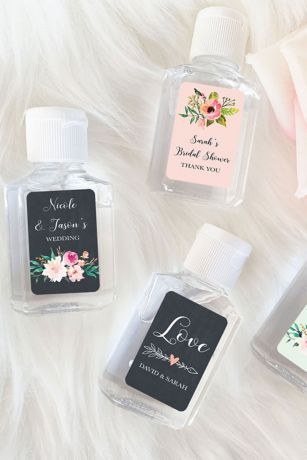 Keep your guests' wellbeing in mind with cute custom bottles of hand sanitizer, personalized to match your event. Labels arrive separately from bottles; some assembly required.