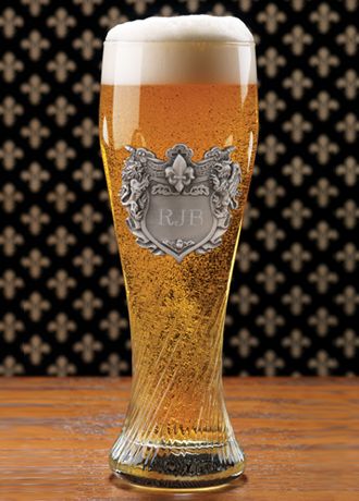 After your groomsman receives his Personalized German Pilsner with Plaque he'll never want to drink out of his old boring beer mug again. Featuring an eye-catching twist bottom and an exquisitely designed pewter shield, this pilsner will stand out in any barware collection. Designed with a wider opening to preserve the head and flavor of your favorite beer, this glass is an innovative twist on the classic pilsner design and a gift any groomsman would be thankful to own.