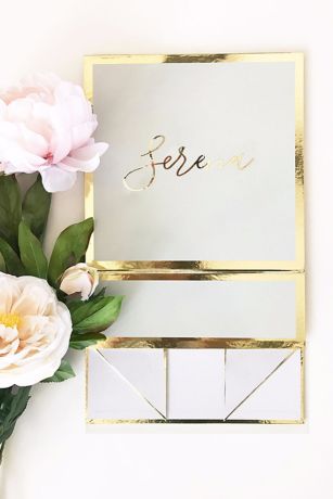 These personalized gift boxes are a classy way to package gifts for everyone in your bridal party! Each elegant box is personalized with a gold script name of your choice on top of the box and a card insert with a special note.